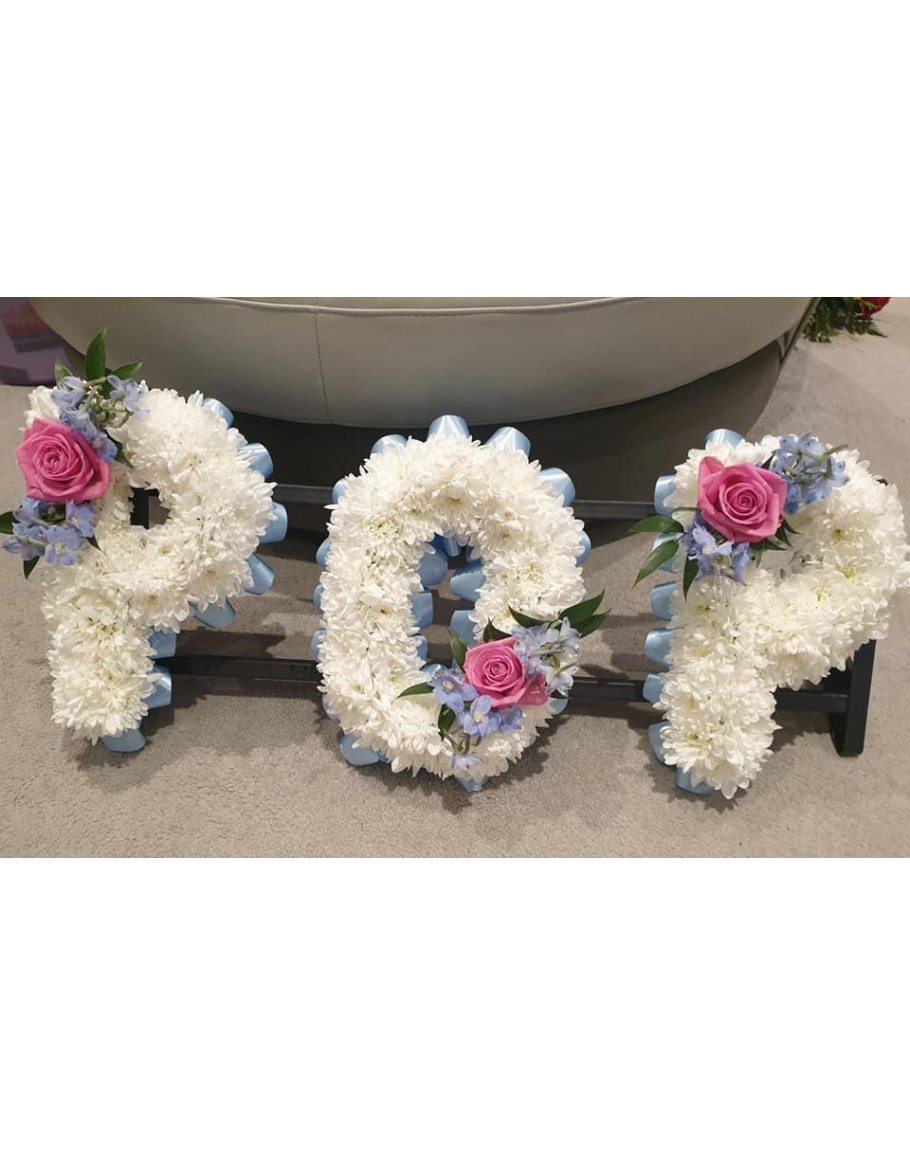 Funeral letters and number tributes are often seen at funerals and are usually dedicated to a particular family member as a main tribute from the closely bereaved.Choose a single letter, word or number personal to you and Samantha’s Flowers will create a beautiful arrangement in your colour theme with delicate floral detailing.Please call us to discuss this option. Samantha’s Flowers 01708 735222.Prices from:£40 per letter-based £40 per letter Open £50 per letter Roses